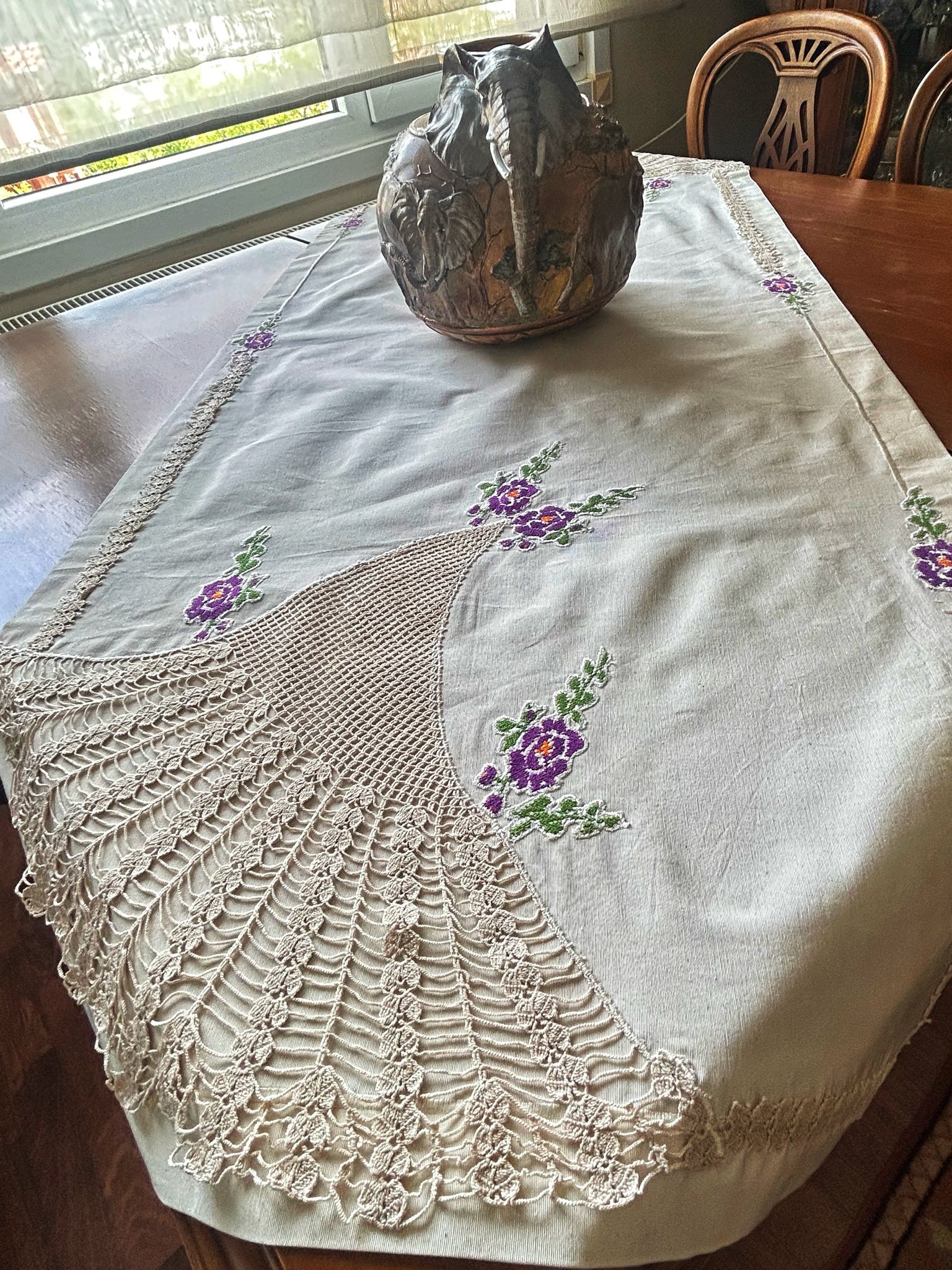 ÜRÜN GENEL BİLGİLER : Ürün fay kumaş üzerine kanaviçe ve dantel işlemeli ürün dür.